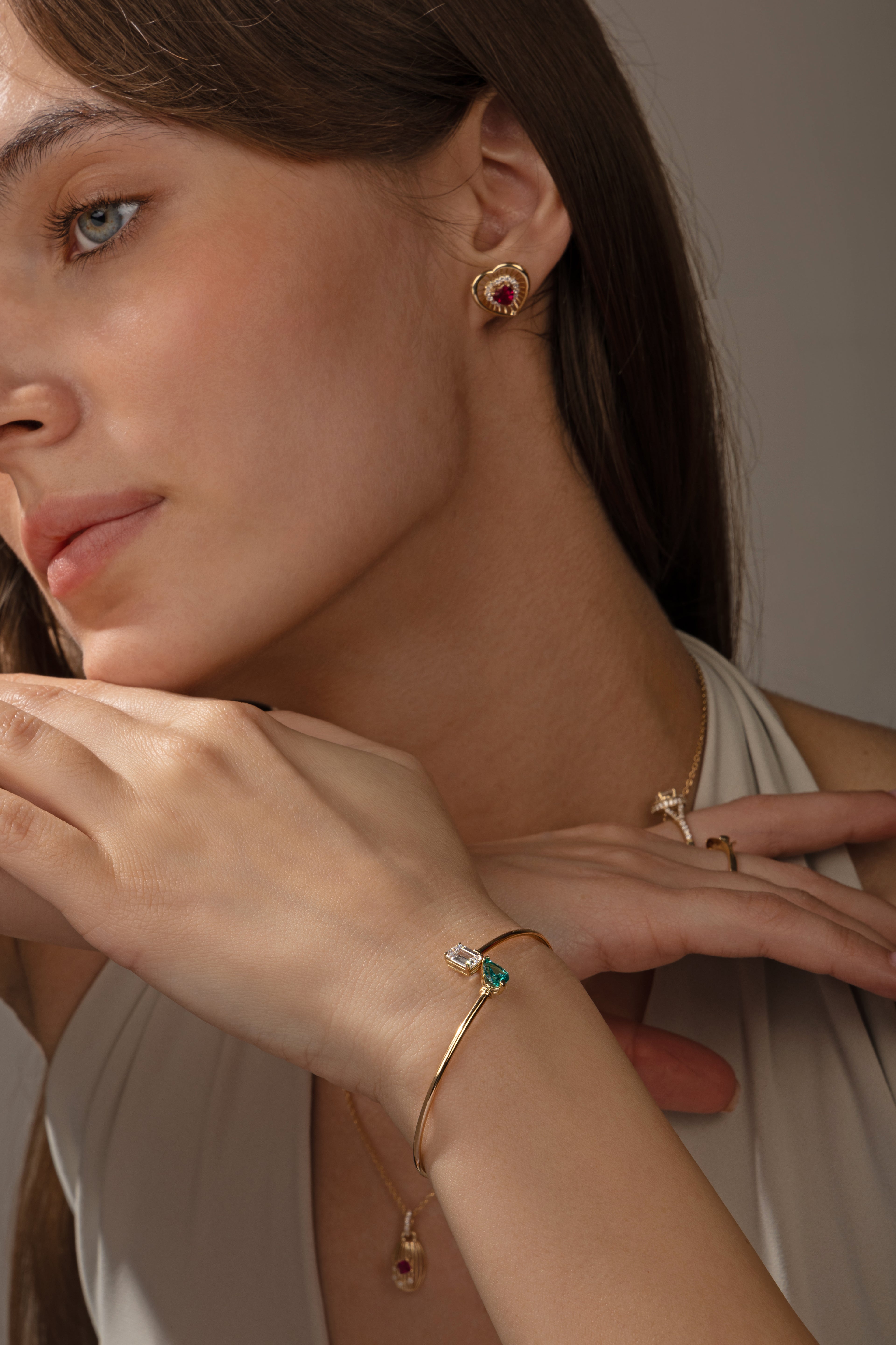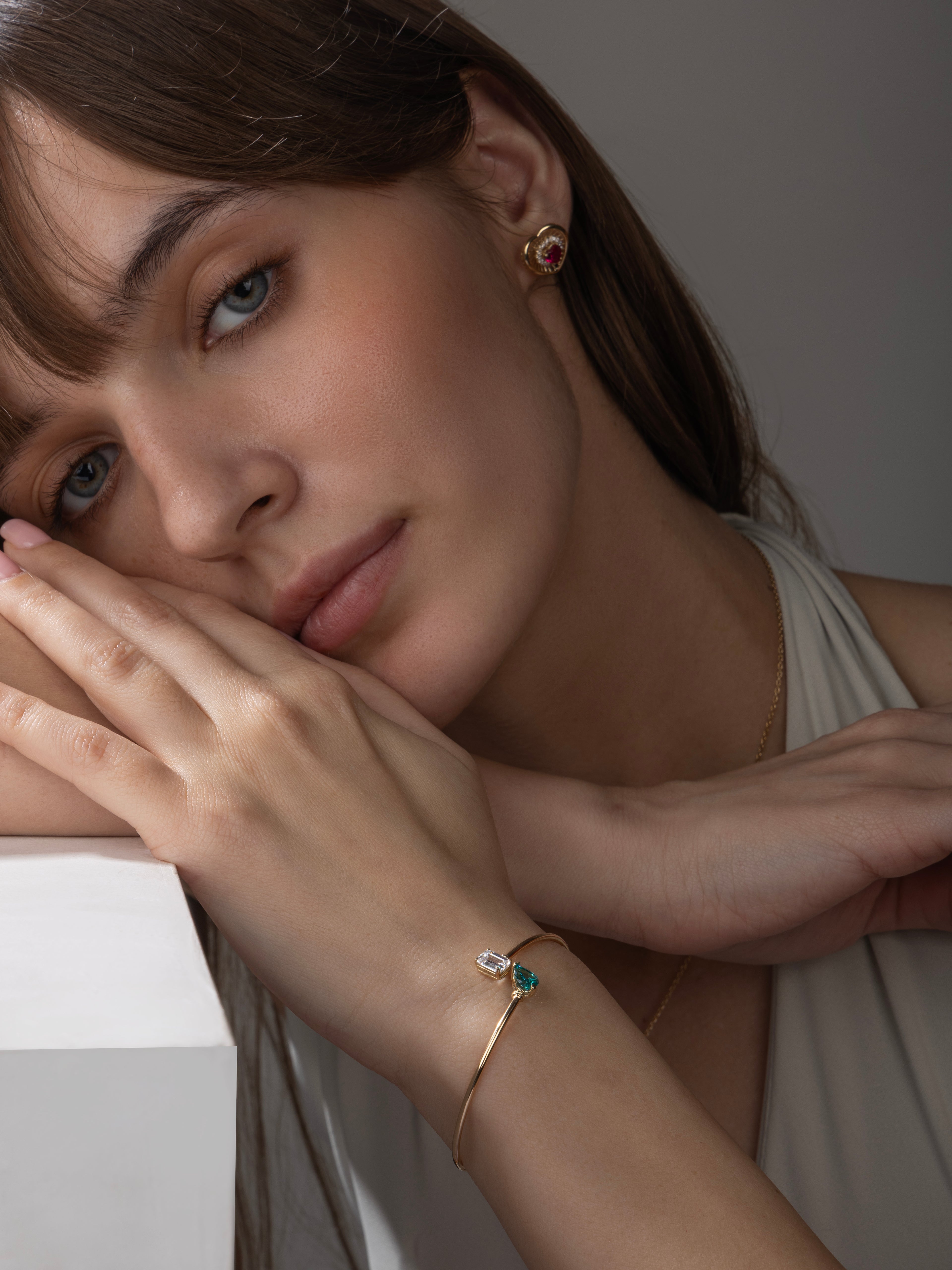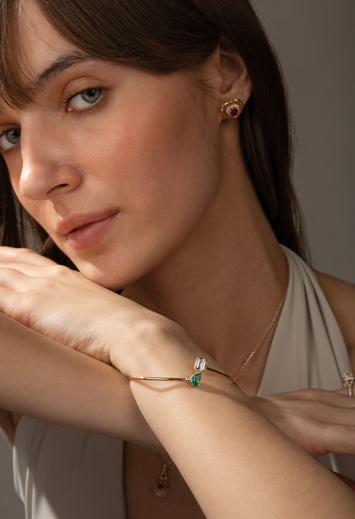 Teardrop & Emerald-Cut Open Cuff Bracelet